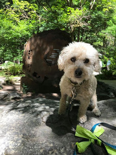 We were lucky enough to find some fresh water to cool off in, along the Eel River in Benbow. You can easily see the river, and people swimming, from the highway but getting there was not. GPS had me taking a short narrow dirt road along a small cliff to connect to the paved road. I don't know what I would have done if another truck came along. It was worth the adventure though. I think this was Sparky's first time in fresh water because he didn't know how to react at first. Lord know he doesn't like baths, but he loved this! It was pretty hot - about 85, and the river was cool and as clear as glass. It was so refreshing. The shore and bottom were lined with smooth rocks, so shoes are recommended. Parking is limited on road but it's only a short walk.