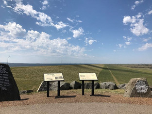 Took off for Fort Peck today – about 15 miles south. Built during the New Deal, this is the largest “earthen” dam in the US. An earthen dam is made with compacted earth. It’s almost a mile long, not including the spillway. There are lots of recreation spots in the park, unfortunately none are dog-friendly, but I found one easy access swimming area that I snuck Sparky into just to cool off his paws. I wish we could have stayed, the water was nice.